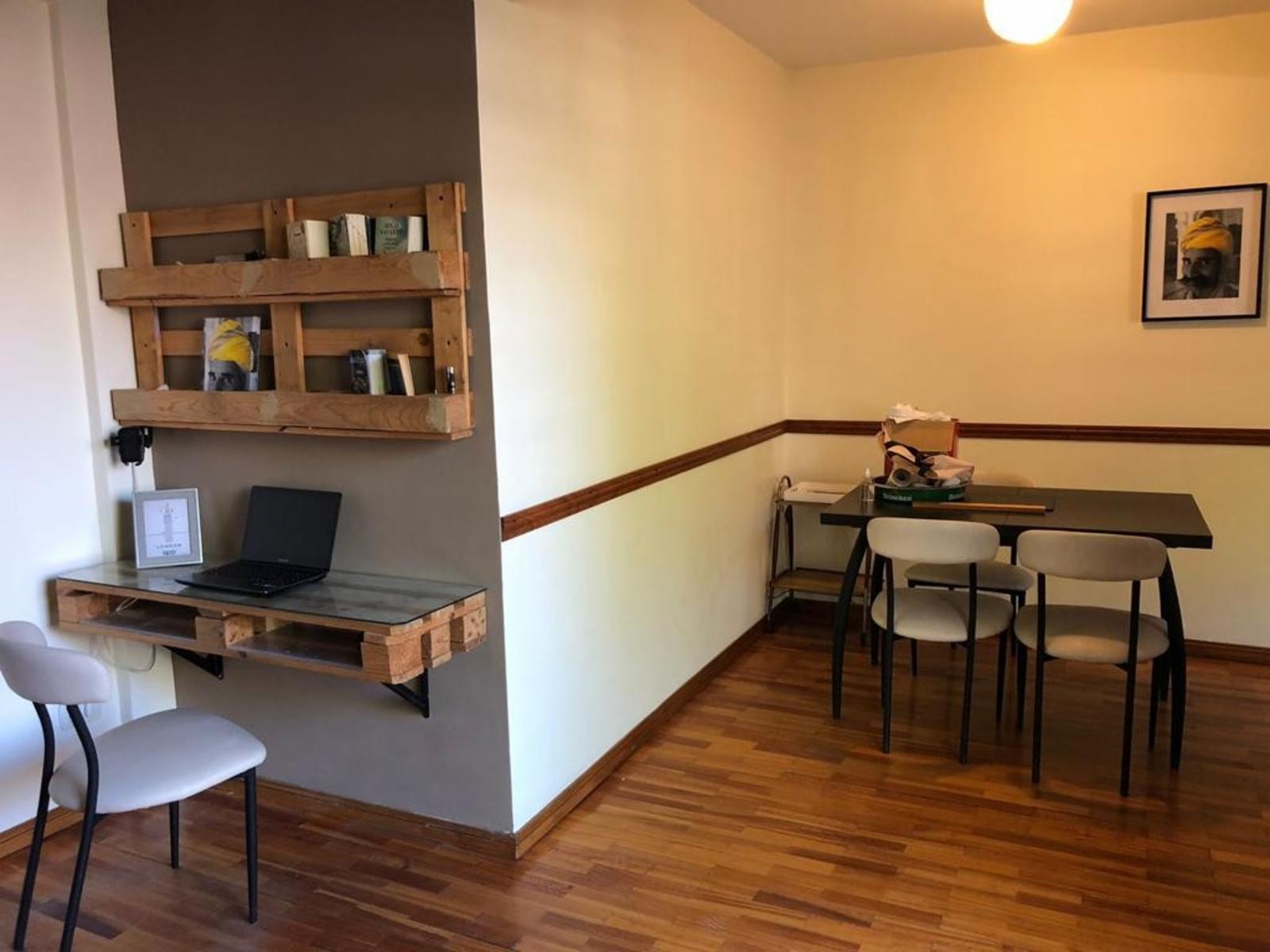Código 10167-0224 | Hermoso y luminoso departamento de 2 Ambiente con balcón al contrafrente, totalmente amoblado y equipado, pisos de madera pulidos, cocina completa, living comedor con aires acondicionado, calefacción mediante estufas, tv con cable e internet, amplia habitación con aire acondicionado y calefacción, ubicado a 5 cuadras de la Av Córdoba, a 2 cuadras de la Av Newbery, a 2 cuadras de la Av Dorrego, a una cuadra de la Av Corrientes.
