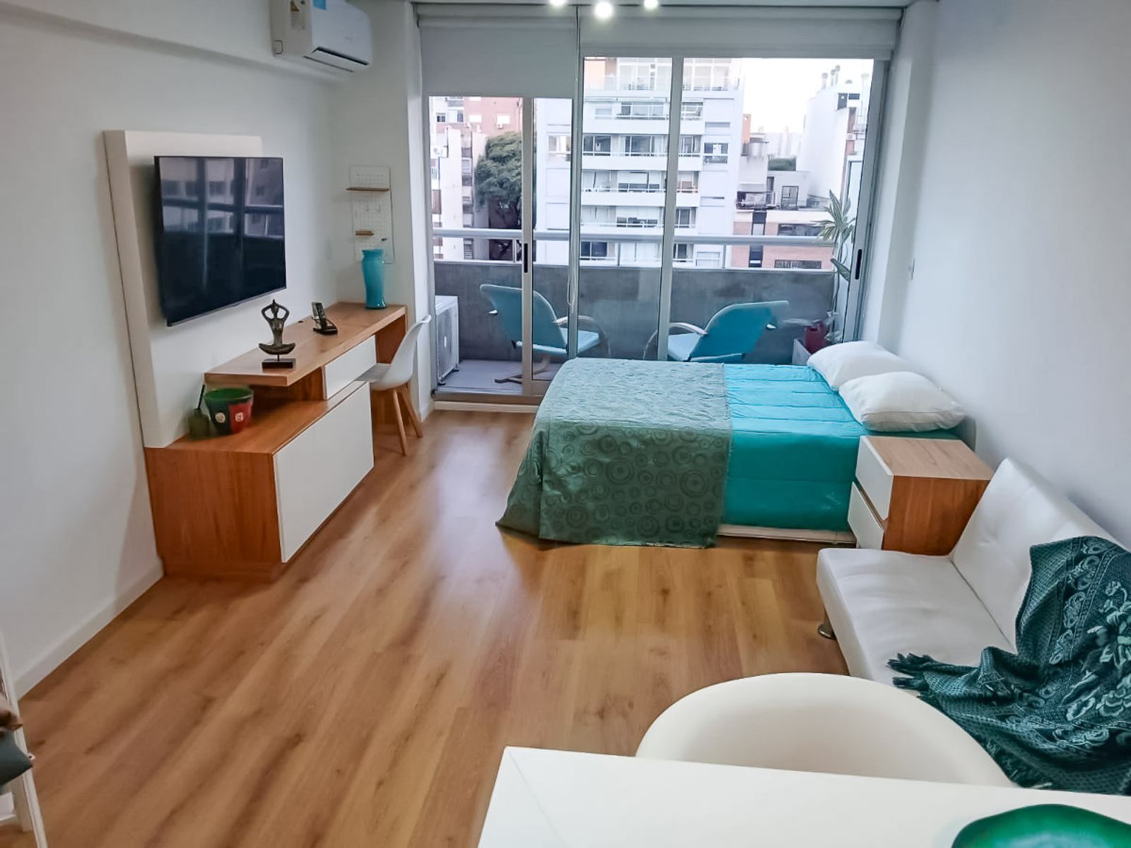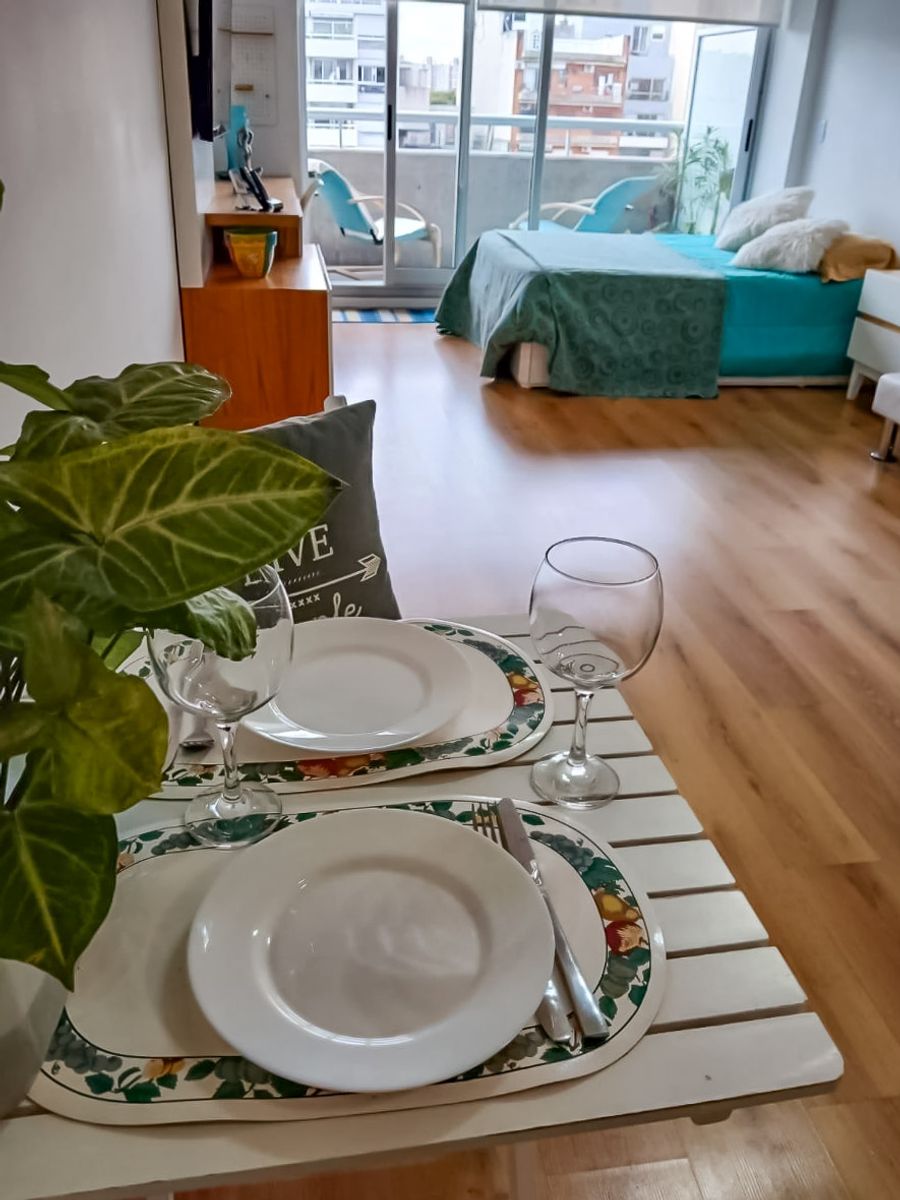 Gran monoambiente moderno y muy luminoso, con salida a un hermoso balcón lleno de sol. Ubicado en contrafrente, ofrece una vista abierta a las piscinas y un entorno súper silencioso, ideal para descansar y disfrutar.
