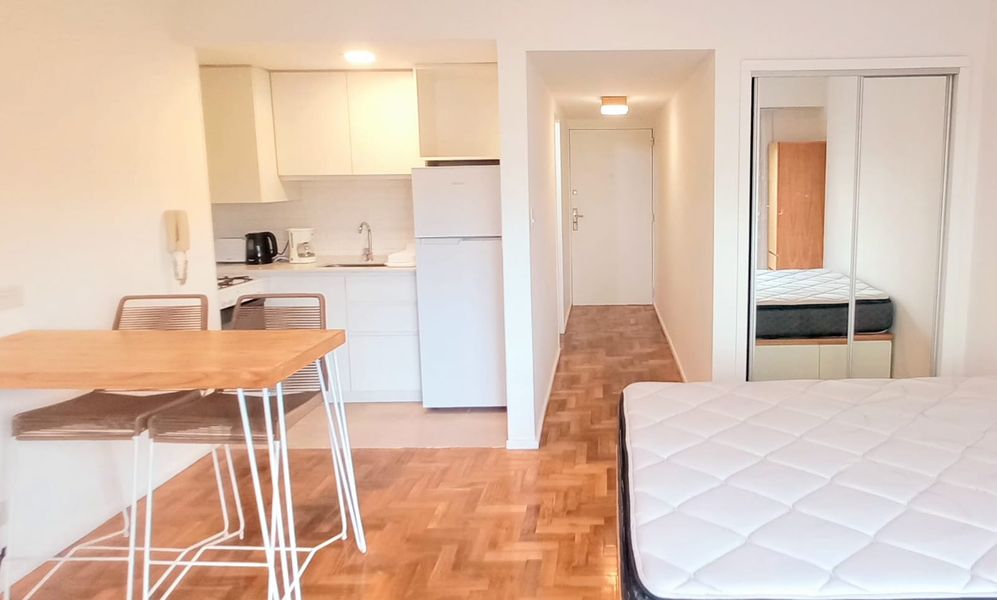 DISPONIBILIDAD INMEDIATA. Hermoso departamento tipo monoambiente muy luminoso, refaccionado hecho a nuevo, totalmente amoblado y equipado, cocina completa integrada, aire acondicionado frio/calor, escritorio de trabajo/estudio, baño completo. Ubicado en el barrio de Colegiales, con amplia oferta de cafes y gastromica.