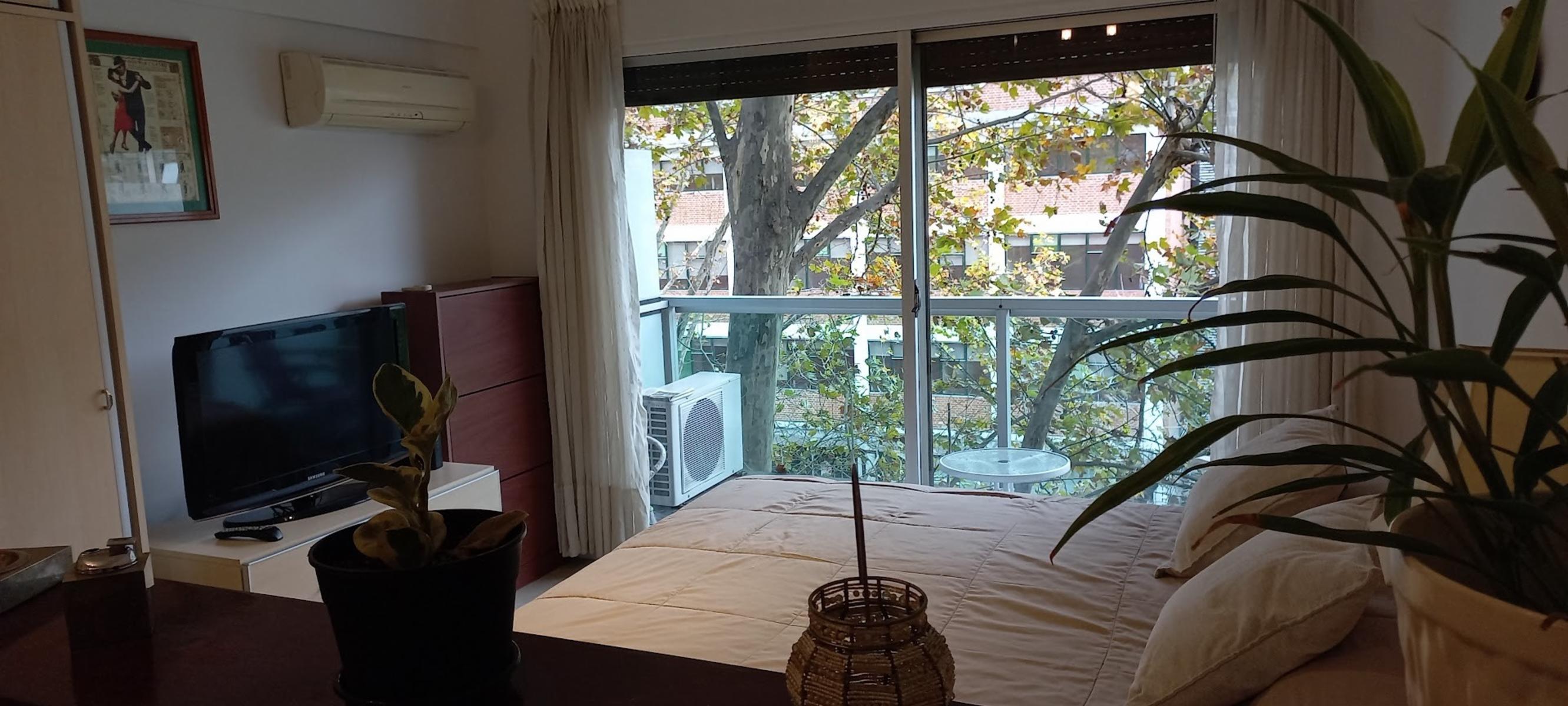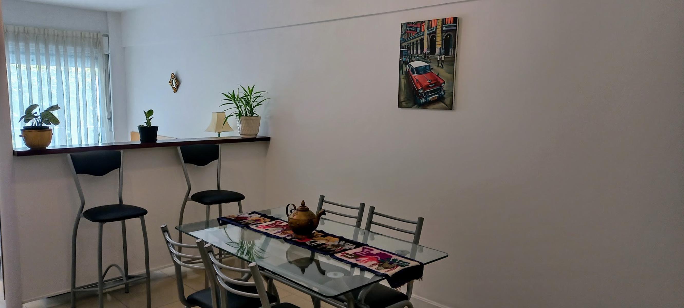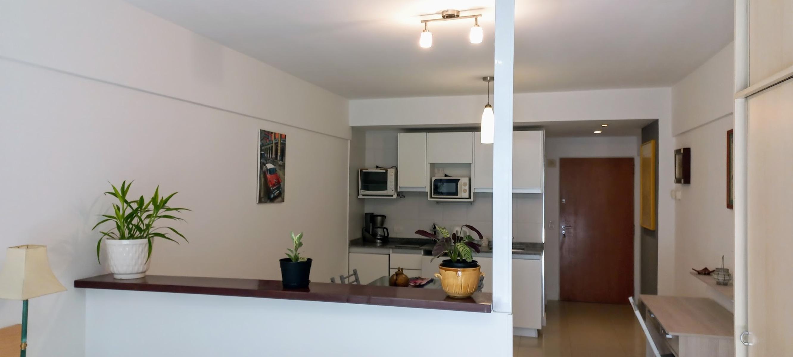 DISPONIBLE A PARTIR DEL 15/4 Luminoso departamento tipo monoambiente totalmente amoblado y equipado con balcon al frente, ubicado en un cuarto piso, cocina integrada, mesa comedor, placard, cuenta con barra que divide el living comedor de la habitacion, Ubicado al frente del parque de la Ciencias, a metros del Centro Comercial Los arcos, zona muy tranquila, llena de bares, restaurantes y cafes.
