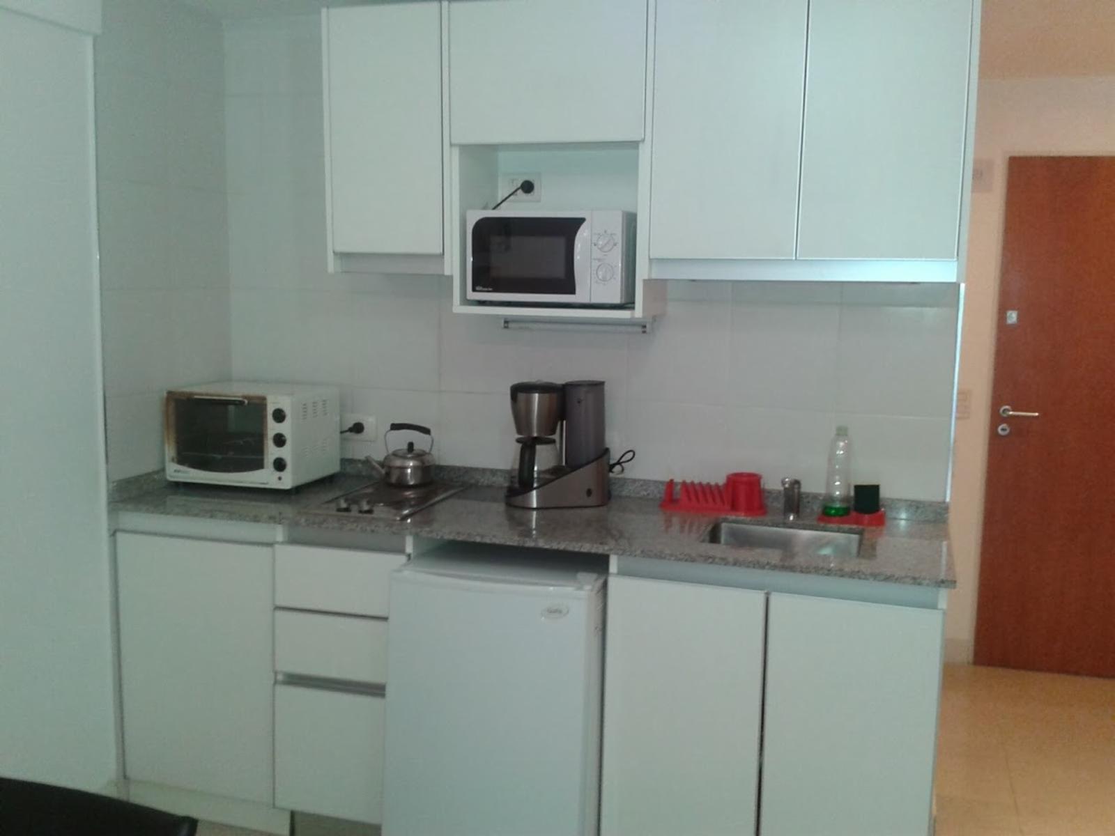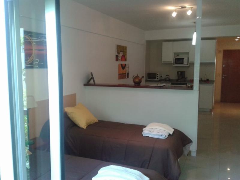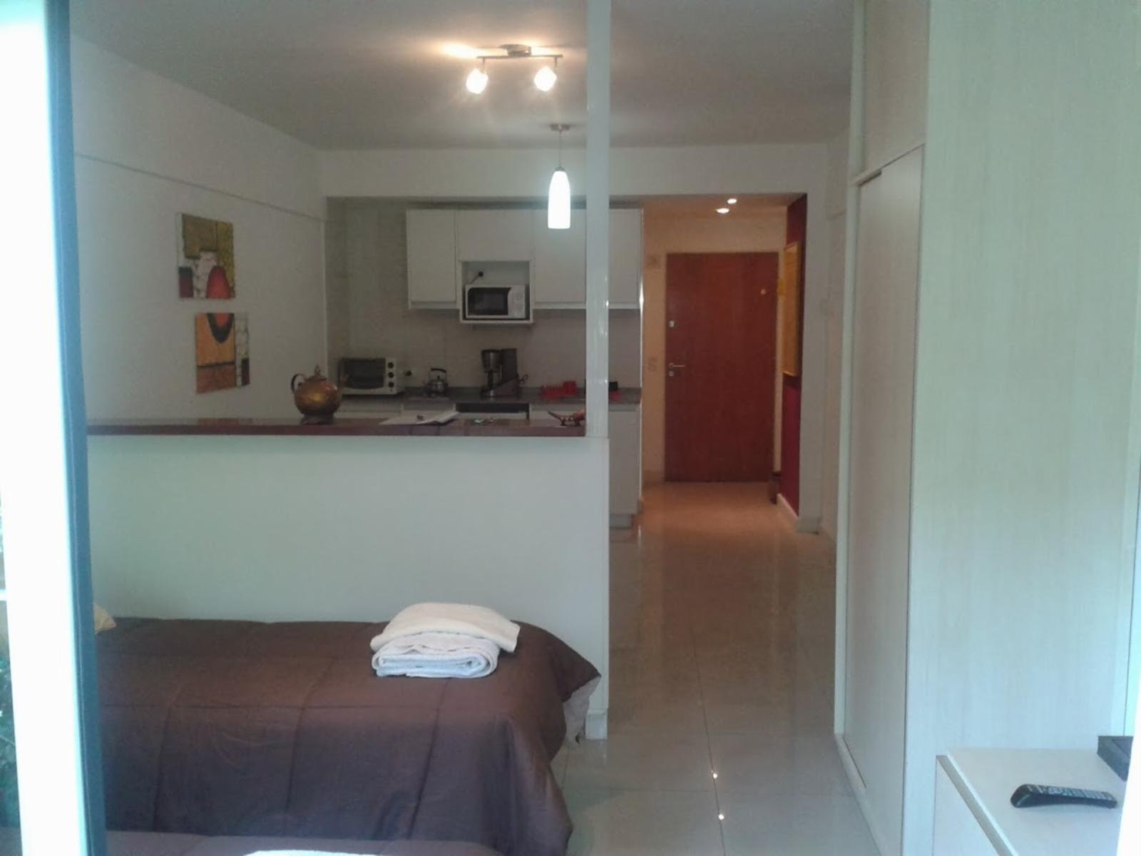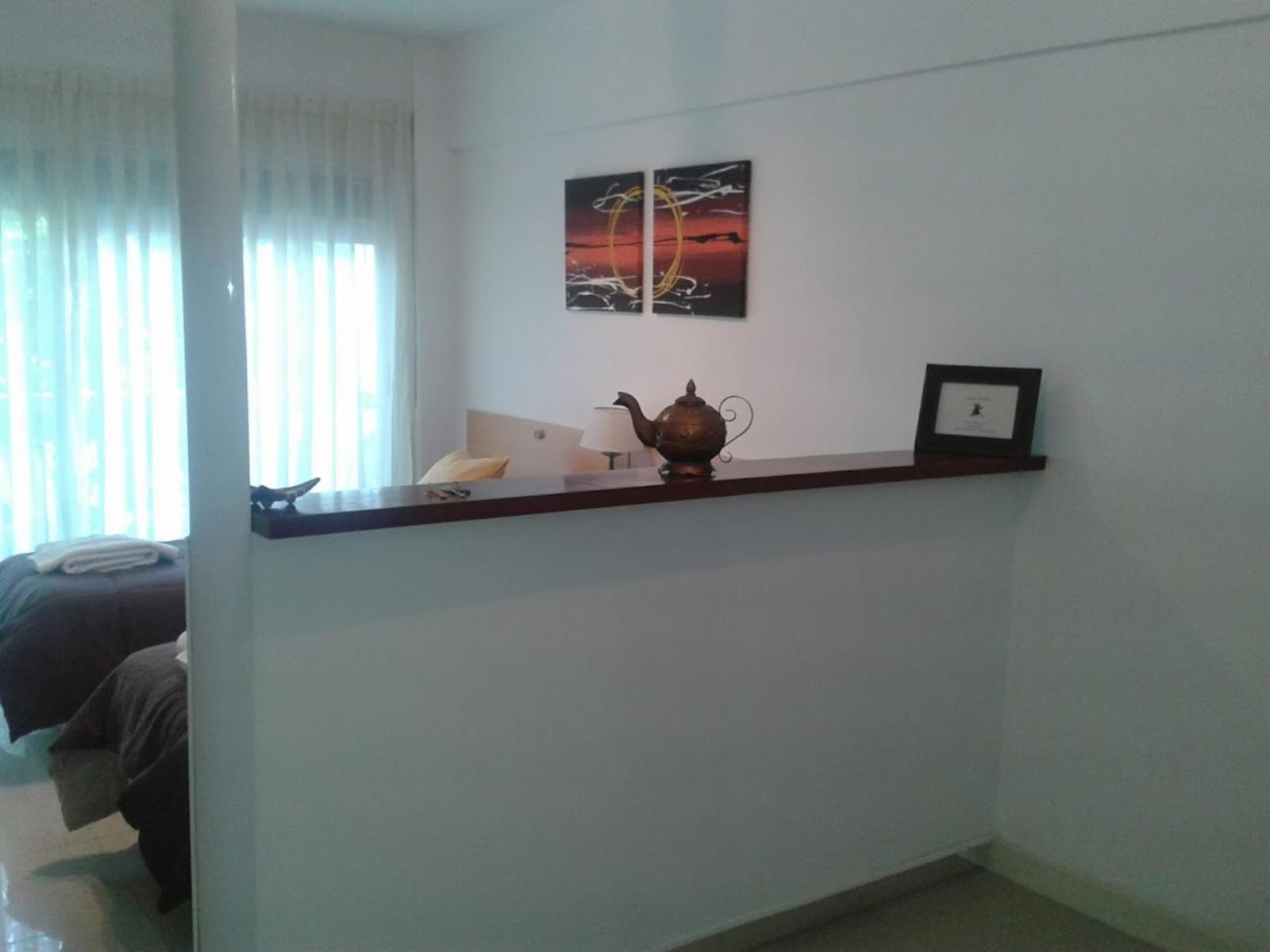 DISPONIBLE A PARTIR DEL 15/4 Luminoso departamento tipo monoambiente totalmente amoblado y equipado con balcon al frente, ubicado en un cuarto piso, cocina integrada, mesa comedor, placard, cuenta con barra que divide el living comedor de la habitacion, Ubicado al frente del parque de la Ciencias, a metros del Centro Comercial Los arcos, zona muy tranquila, llena de bares, restaurantes y cafes.