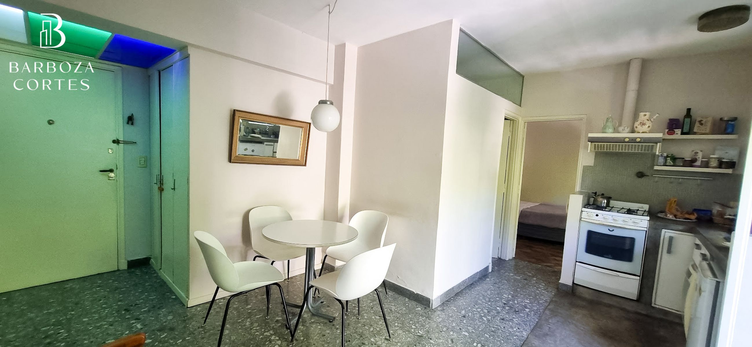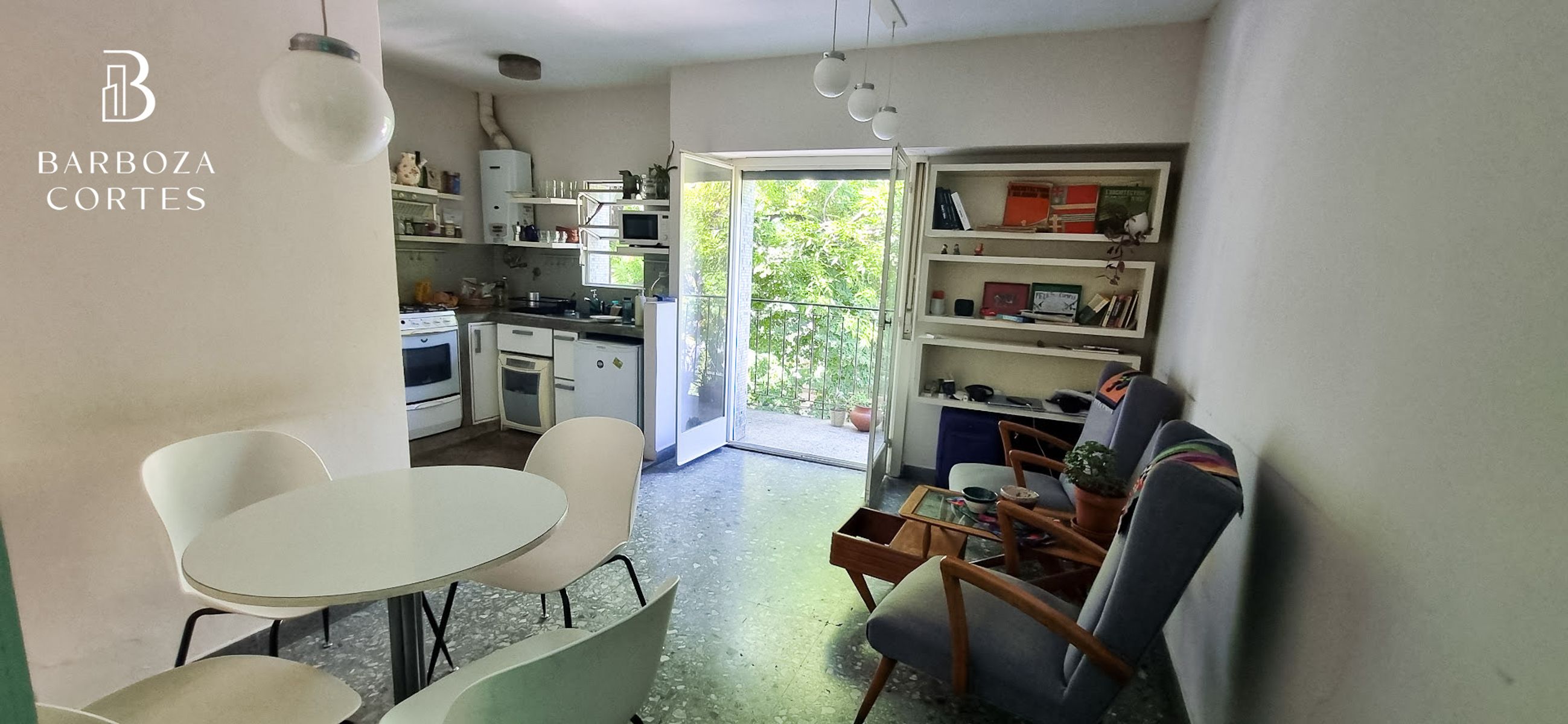 Hermoso departamento ubicado en un 2do piso por escalera, amplio balcon al frente, living comedor, cocina integrada, muy luminoso, comoda habitacion con aire acondicionado, placard integrado, baño completo, el departamento cuenta con lavarropas, totalmente amoblado y equipado. Ubicado en a 2 cuadras de la Av Cordoba, zona muy tranquila y silenciosa, rodeado de cafes y gran oferta gastronomica.