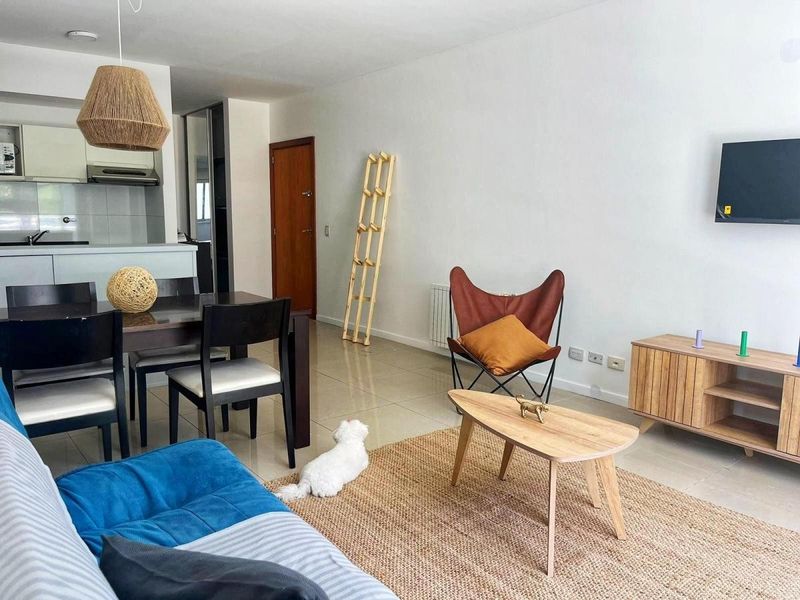 Departamento de 2 ambientes, muy luminoso, totalmente amoblado y equipado. El departamento cuenta amplio Living comedor, balcon corrido al contrafrente y pisos de porcelanato. Cocina integrada con amplio espacio de guardado. Habitación principal con cama matrimonial, aire split frio/calor , amplio placard y baño completo. El edificio cuenta con piscina, solarium, parrilla, sala de reuniones, laundry y gimnasio. Excelente ubicación zona Palermo Hollywood, a metros de Av Juan B justo con varios medios de transporte y Av Niceto Vega, rodeado de restaurantes, cafeterias y bares.