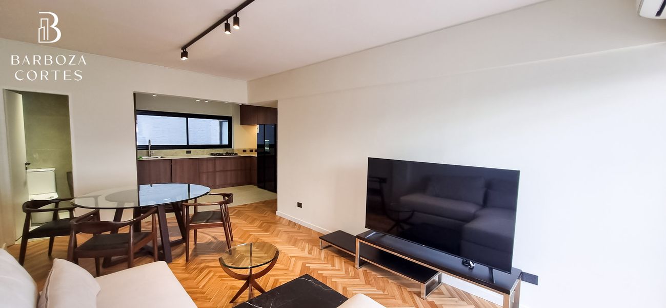 DISPONIBILIDAD INMEDIATA. Departamento totalmente reclicado, hecho a nuevo A ESTRENAR, cuenta con una amplia cocina con ventanales, heladera doble puerta, Toilette de recepcion, luminoso living comedor con salida al balcon con vista abierta, ubicado al contrafrente lo cual garantiza mucho silencio. ambas habitaciones cuentan con placares hechos a medida. La habitacion principal tiene una cama a estrenar, la segunda habitacion se alquila con un escritorio o vacia. Moderno baño completo. Pisos de madera pulidos y plastifcados. Todos los ambientes cuenta con Aire acondicionado frio/calor. Totalmente amoblado y equipado todo a estrenar. Capacidad para 2 personas. Edificio con seguridad tipo totem. Ubicado en zona estrategia ente los Barrios de Palermo y Belgrano con varios medios de transporte. Zona llena de cafes y oferta grastronomica.