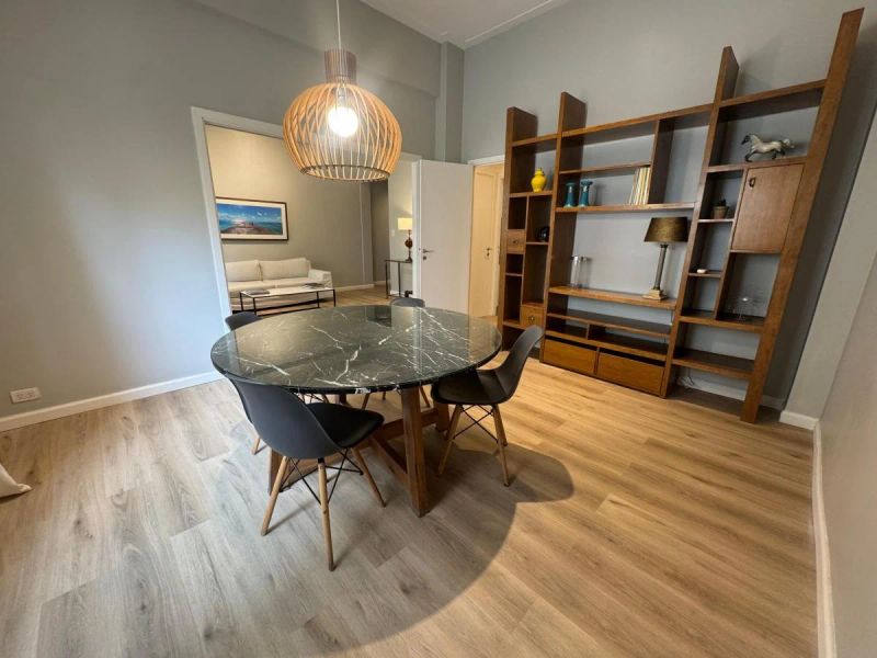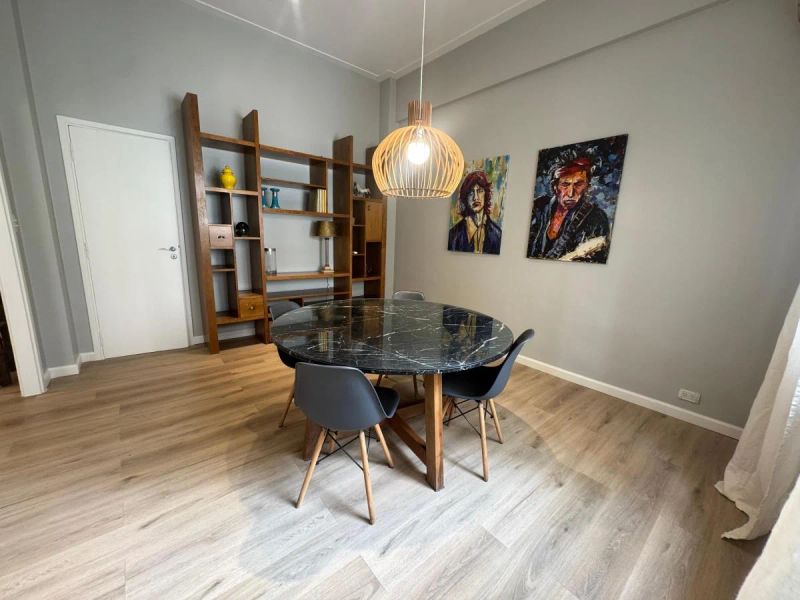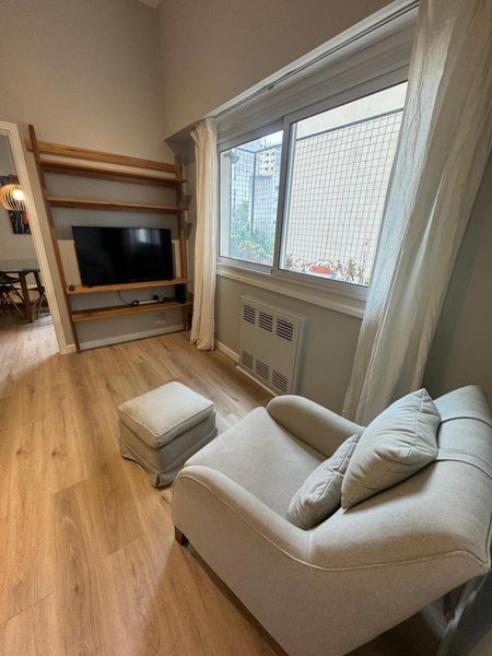 Cuenta con living comedor con Aire acondicionado, Calefacción y pisos flotantes. Cocina independiente con amplio espacio de guardado mas comedor diario y zona de lavadero con conexión a lavarropas. Habitación principal con cama matrimonial y amplio placard + Baño completo. Segunda habitación con 2 camas individuales y amplio espacio de guardado + Toilette de recepción y depedencia de servicio. Excelente ubicacion a metros de la Av Santa Fe, rodeado de varios medios de transporte, comercio, restaurantes, plazas y cafeterias.