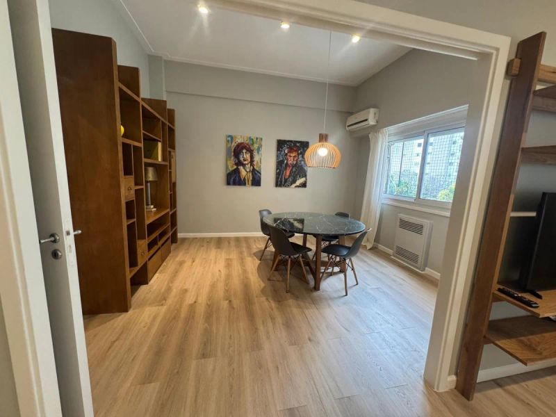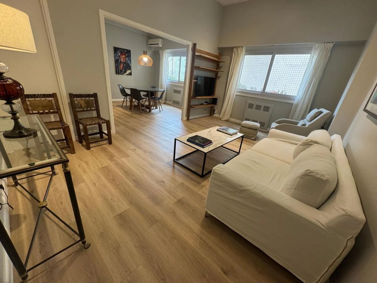 "Departamento de 3 ambientes de Categoria, totalmente reciclado a nuevo, amoblado y equipado. Ubicado en un tercer piso, al contrafrente muy silencioso y luminoso. Con 106 m², se destaca por sus ambientes amplios, techos altos y una distribución cómoda y funcional.