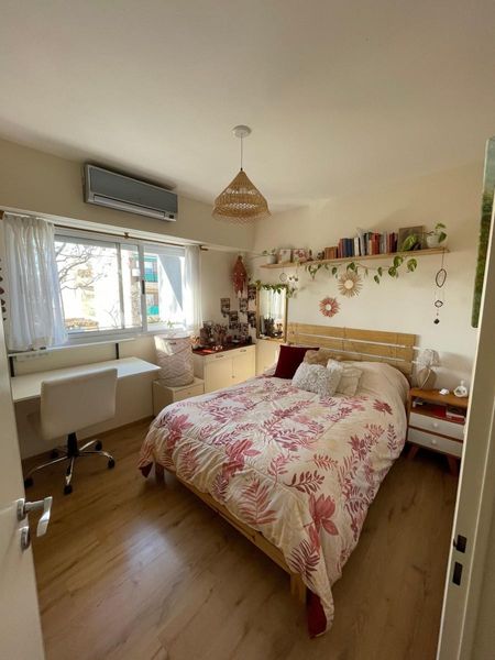 Departamento de 2 ambientes, muy luminoso, totalmente amoblado y equipado. El departamento cuenta amplio Living comedor, balcon al frente y pisos de porcelanato. Cocina integrada con amplio espacio de guardado y barra desayunadora y conexion con lavarropas. Habitación principal con cama matrimonial, aire split frio/calor , amplio placard y baño completo. El edificio cuenta con SUM con parilla, Solárium con duchas y cámaras de seguridad en la entrada. Excelente ubicación, a metros de Av Congreso con varios medios de transporte y Av Triunvirato estación Rosas del Subte B.